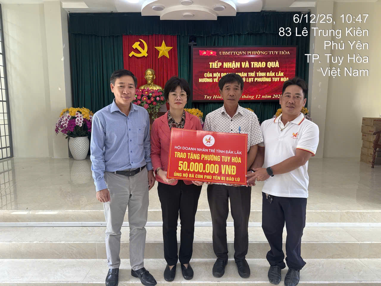 Hội DNT Đắk Lắk đã trích một phần hỗ trợ cho 2 khu vực chịu thiên tai tại Tây Đắk Lắk là xã Yang Cang và xã Krông Na, một phần đã mua nhu yếu phẩm, xuồng cứu hộ gửi đến Đông Đắk Lắk và phần còn lại Hội đã tổ chức chương trình trao tặng đồng hành với các đoàn Doanh nhân trẻ của các tỉnh trao các phần quà này đến tận tay người dân.