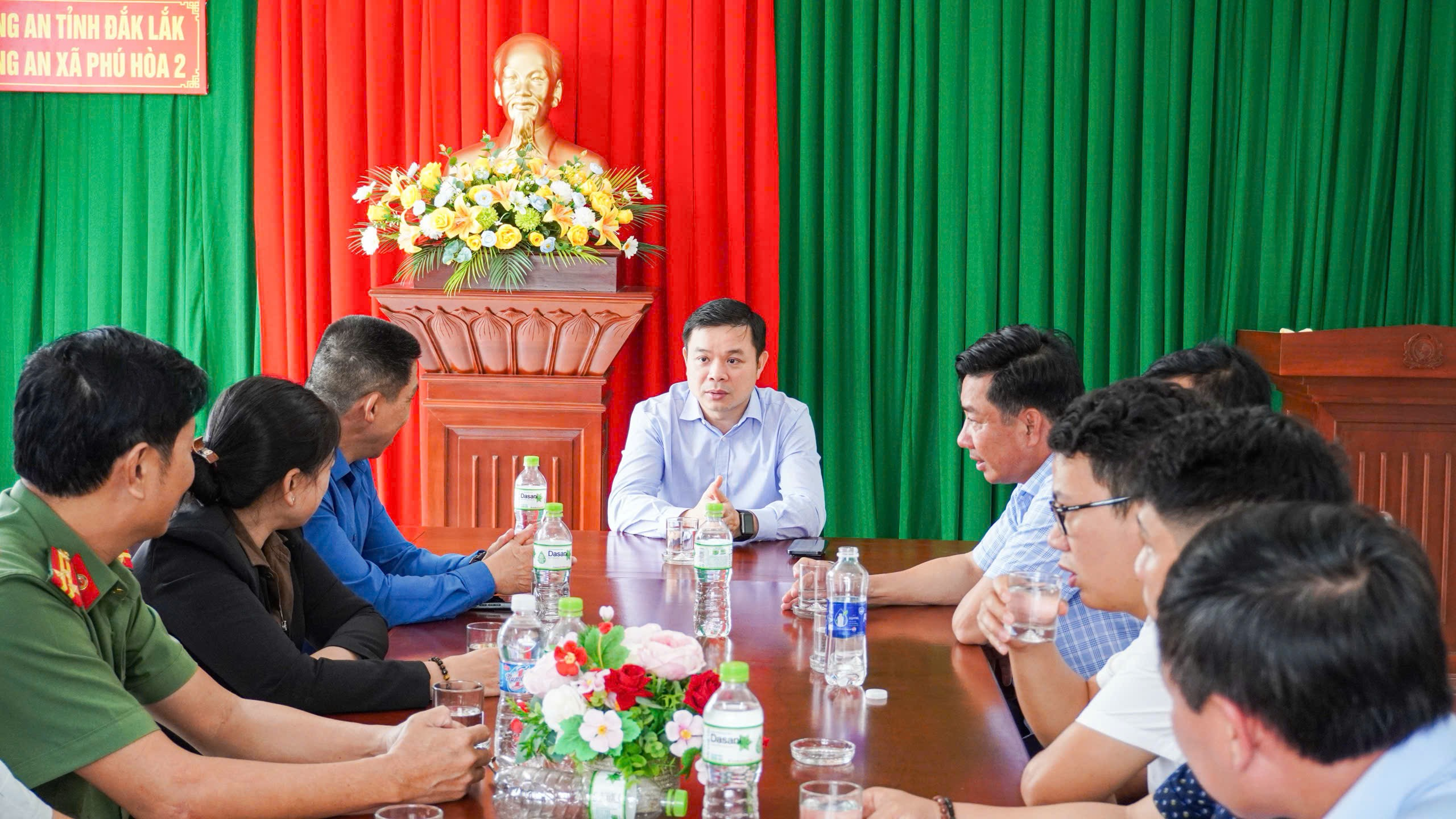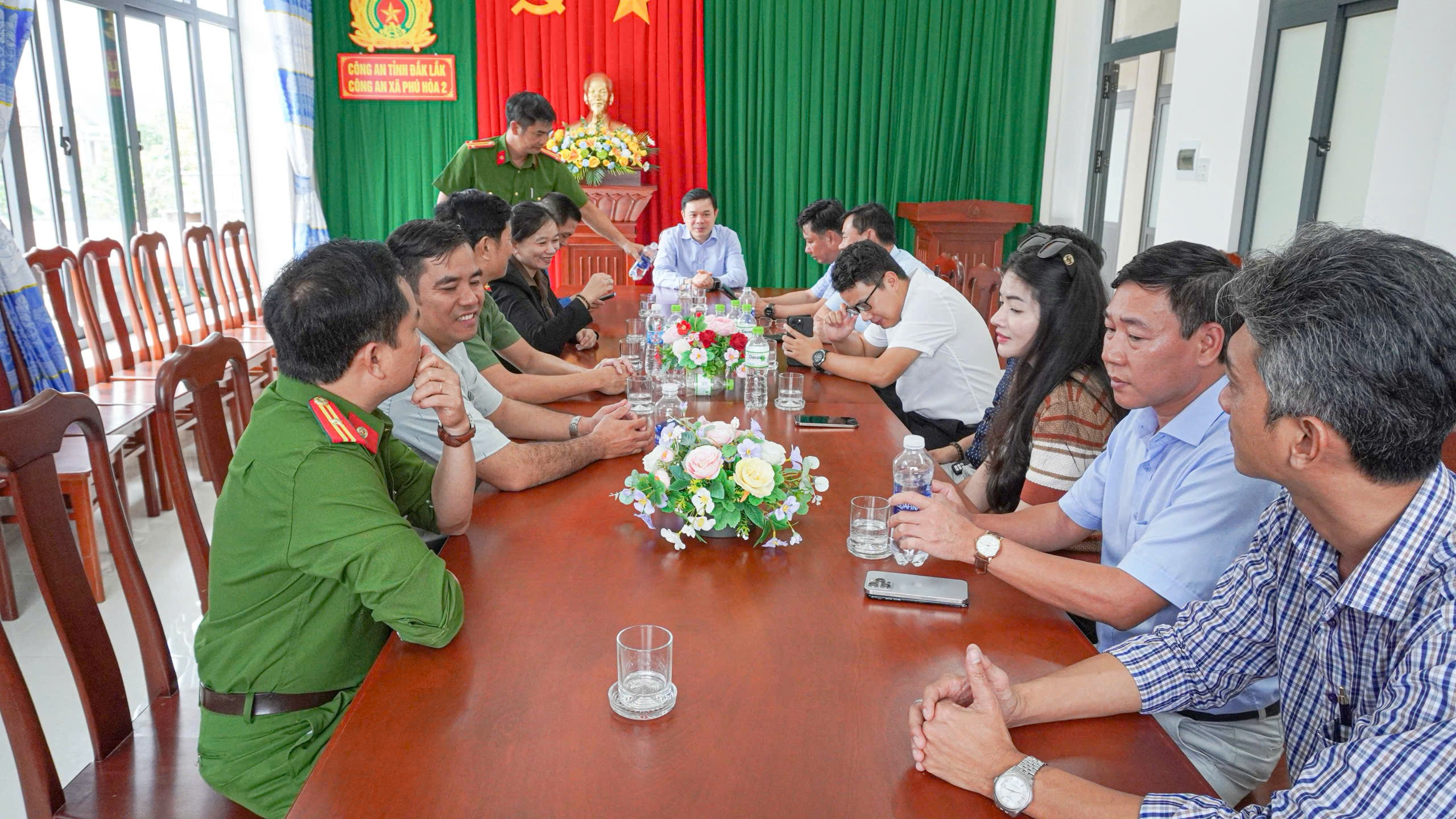 Tiếp đón đoàn có Thượng tá Ngô Tấn Dự – Trưởng Công an xã Phú Hòa 2 và đại diện chính quyền địa phương.