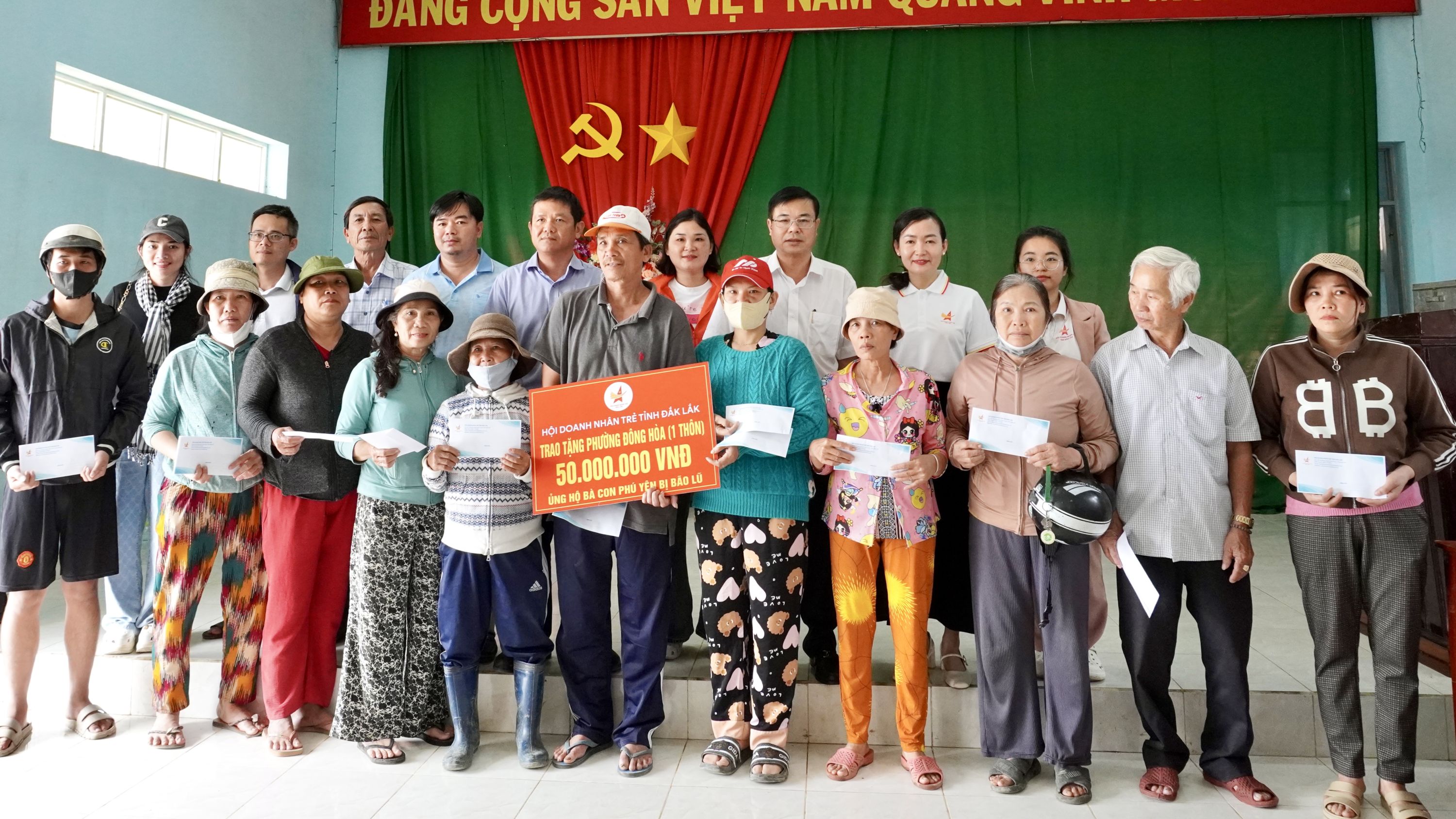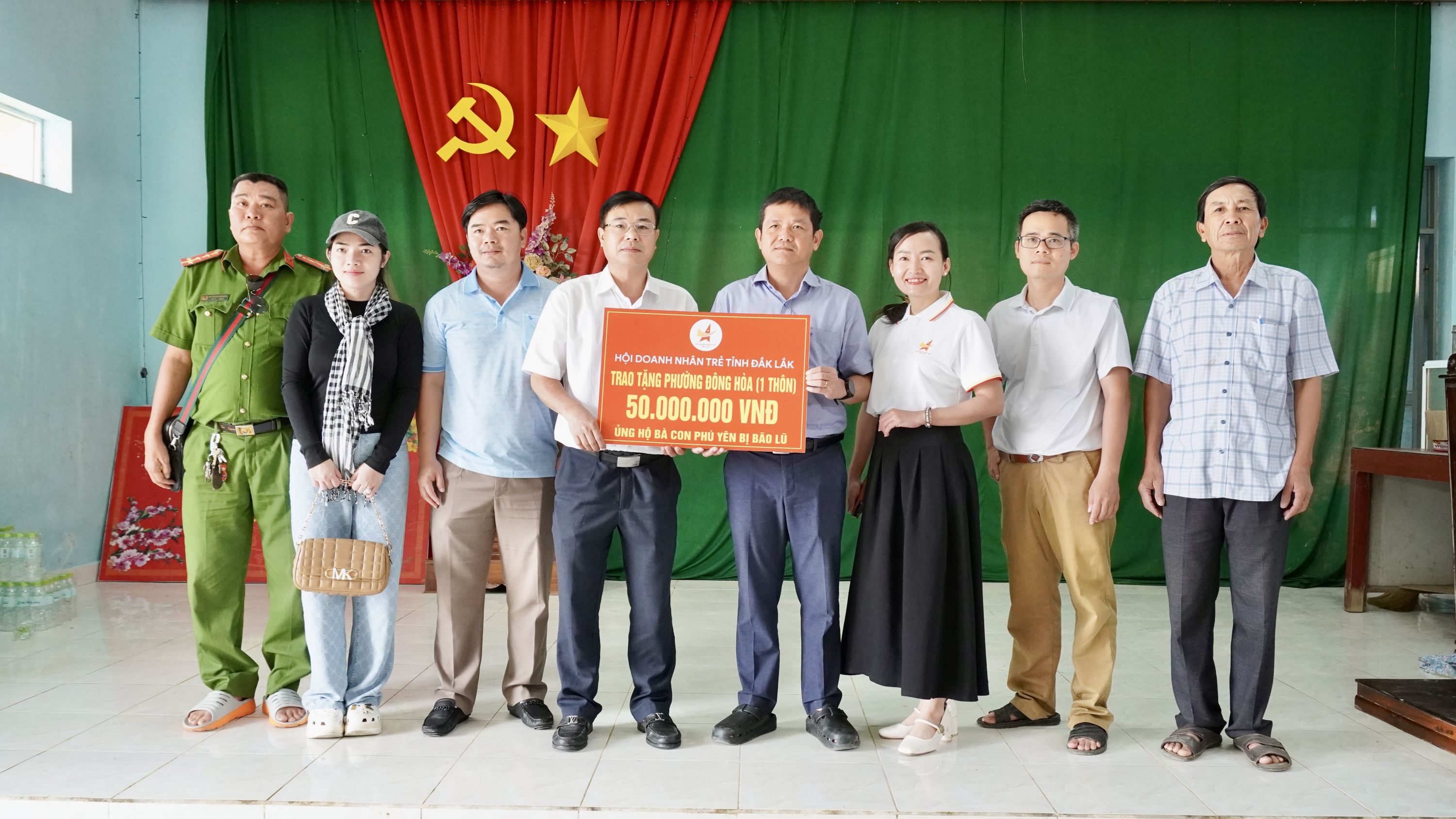 Hội DNT Đắk Lắk đã trích một phần hỗ trợ cho 2 khu vực chịu thiên tai tại Tây Đắk Lắk là xã Yang Cang và xã Krông Na, một phần đã mua nhu yếu phẩm, xuồng cứu hộ gửi đến Đông Đắk Lắk và phần còn lại Hội đã tổ chức chương trình trao tặng đồng hành với các đoàn Doanh nhân trẻ của các tỉnh trao các phần quà này đến tận tay người dân.